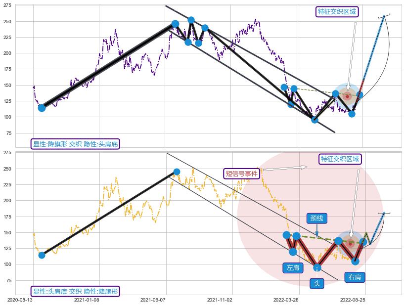 ➢ 降旗形虽然高点降落速度快,但创新低幅度有限,降旗过程中指标出现【底背离】