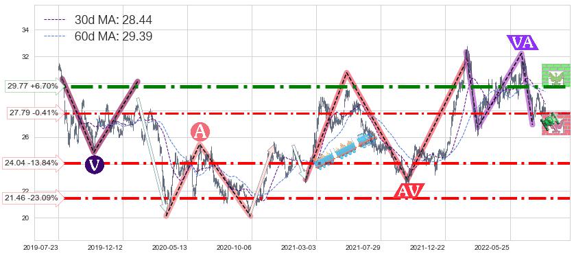 ♘ 阻力价格位29.77,可信任强度92.67%,距离最后交易2022-08-12形成的收盘价格27.90相差 +6.70%