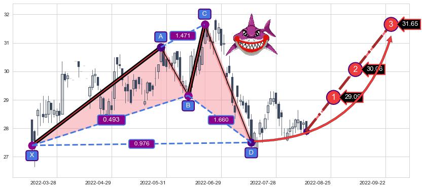 ➣ 已完成【鲨鱼】形态起点X: 2022-03-15, 终点D: 2022-07-15, 共81交易日