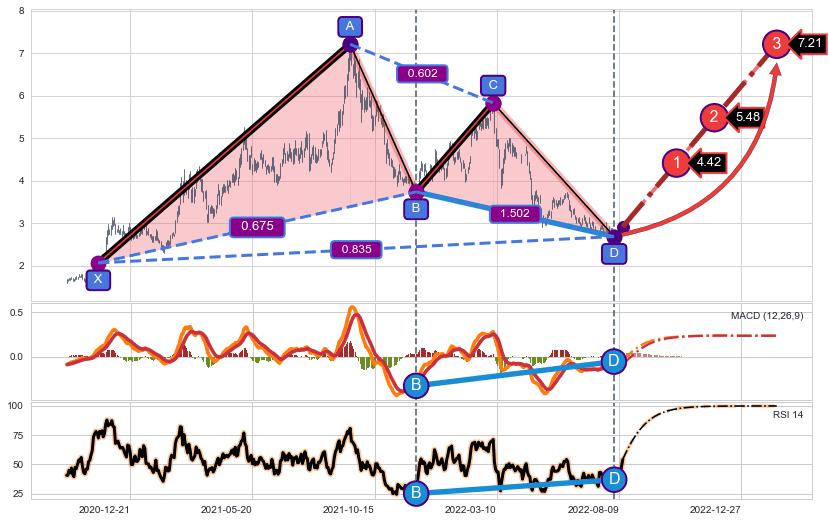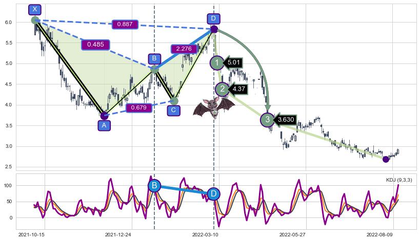 ➣ 已完成【蝙蝠】形态起点X: 2021-10-05, 终点D: 2022-03-07, 共104交易日