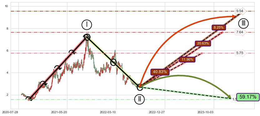 ➣ AI预测: 假定反转启动后, 第❶目标位置(2023-05-23, 3.617)
