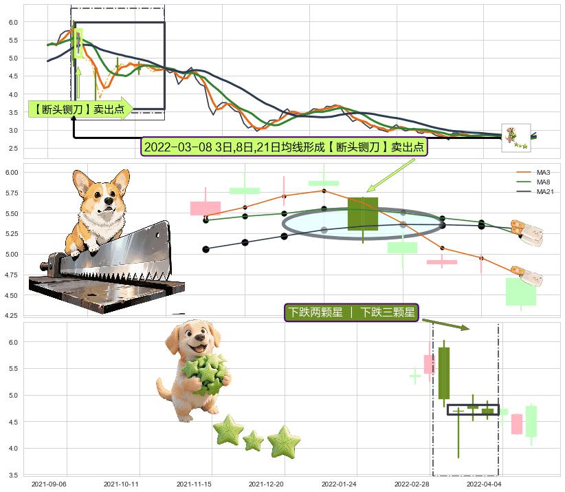 ➢ 【卖1】: 激进型 卖点→(2022-03-15: 3.880 )形成突破【扩散】三角形反转【反转】形态