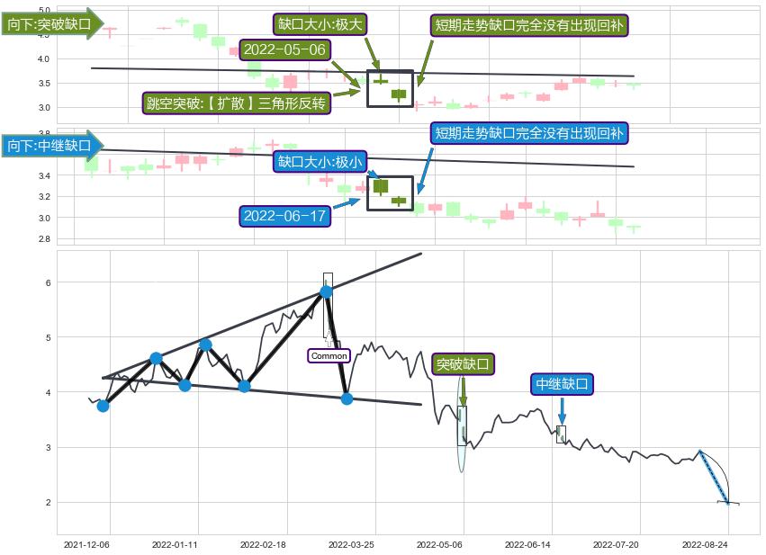➢ (Common ⥥ 【扩散】三角形反转) 🔜 中继缺口 🔜 突破缺口 综合量化分数:44.75 【偏空】