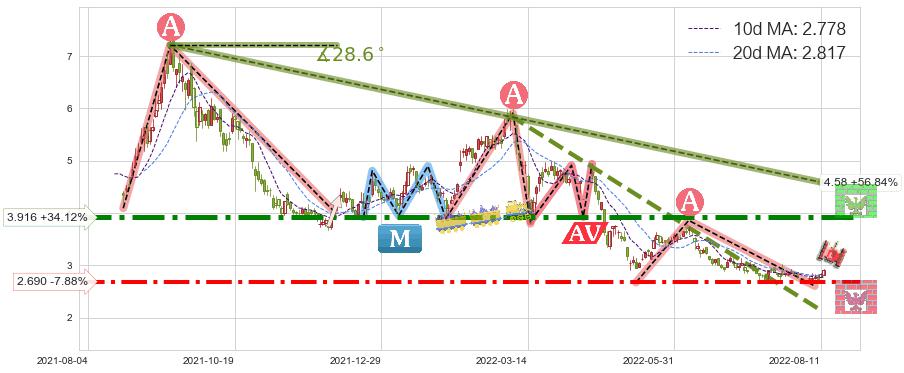 ➣ 【已确认突破】最后价格:2.920与最小【反转】第一目标价格→(2022-08-24: 1.9626 )相较: 下跌空间【中等】