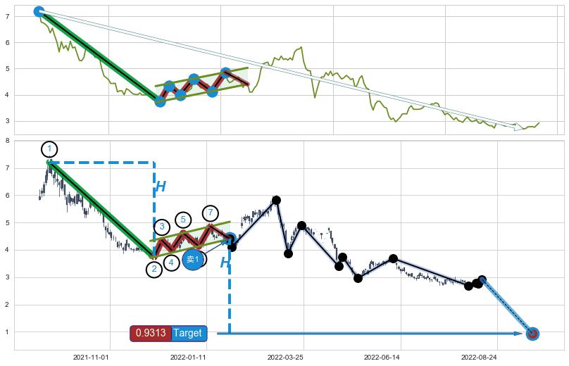 ➣ AI预测: 假定反转启动后, 第❶目标位置(2022-08-24, 2.907)