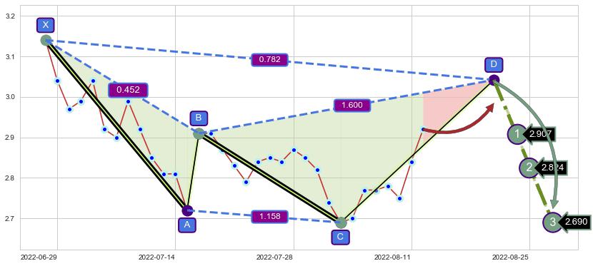 ➣ 未完成【赛福】形态起点X: 2022-06-28, 已到达C点: 2022-08-03, 预测最终D点: 2022-08-22, 共39交易日