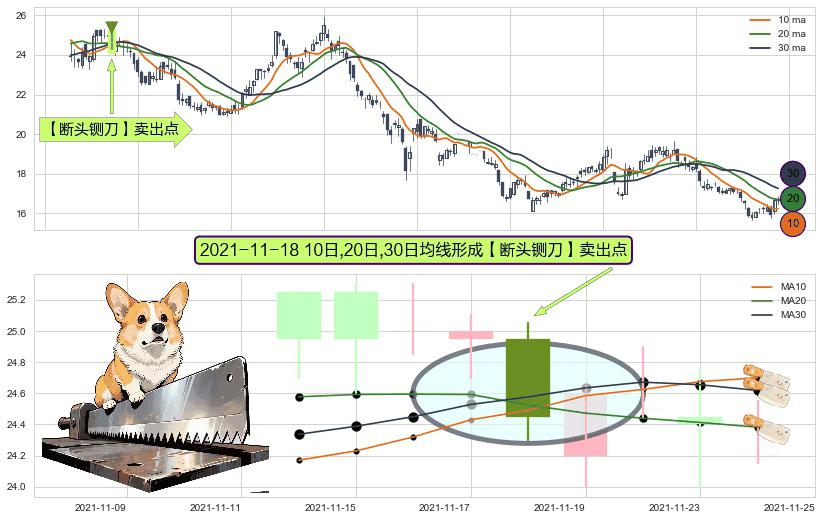 形态多维评估: ⚀ 2021-11-18日显现 10日-20日-30日均线 【断头铡刀】卖出点 看空信号,后市看跌,卖出