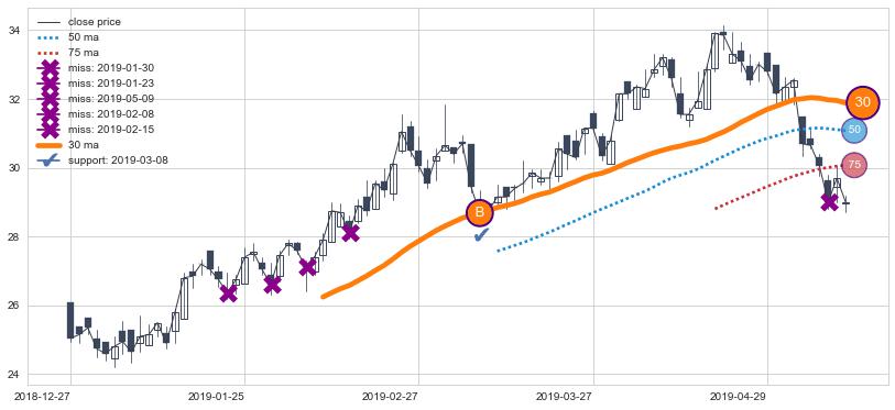 上涨趋势2018-12-27-2019-05-14,均线30确认关键支撑1处