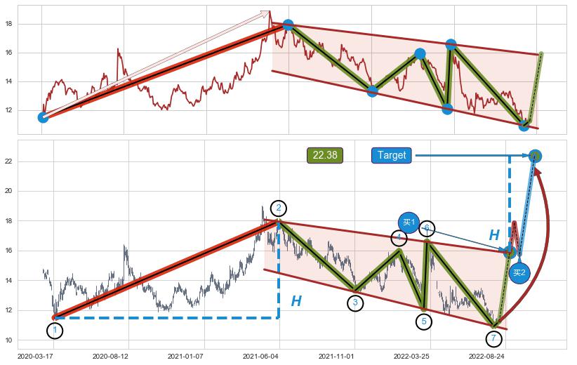 ➣ 最小中继整理涨幅→𝐇: 6.46 (𝐇旗杆的长度:旗杆起点→顶点)