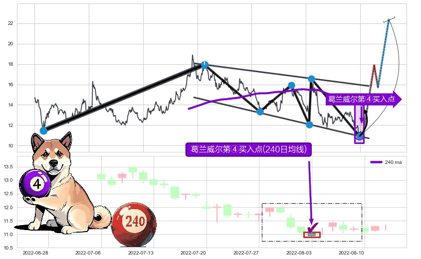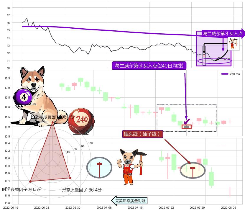 | 2 🅚:早晨之星(黎明之星) ➕ 🎢:葛兰威尔第④买入点买入点信号形成后,猜想后续走势持续反弹上升(均值回复) ☞ 看多信号 ⇥ 【均线】交织【🅚线】⇥ 综合量化分数: 51 | > |