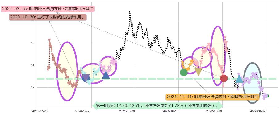 ♘ 阻力价格位12.76,可信任强度71.72%,距离最后交易2022-08-12形成的收盘价格11.24相差 +13.56%