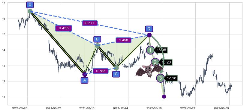 ➣ 已完成【蝙蝠】形态起点X: 2021-05-26, 终点D: 2022-02-11, 共178交易日