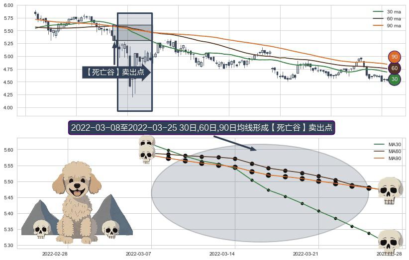 ⚀ 2022-03-09-日至2022-03-25-日显现 30日-60日-90日均线 【死亡谷】卖出点 看空信号,后市看跌,卖出