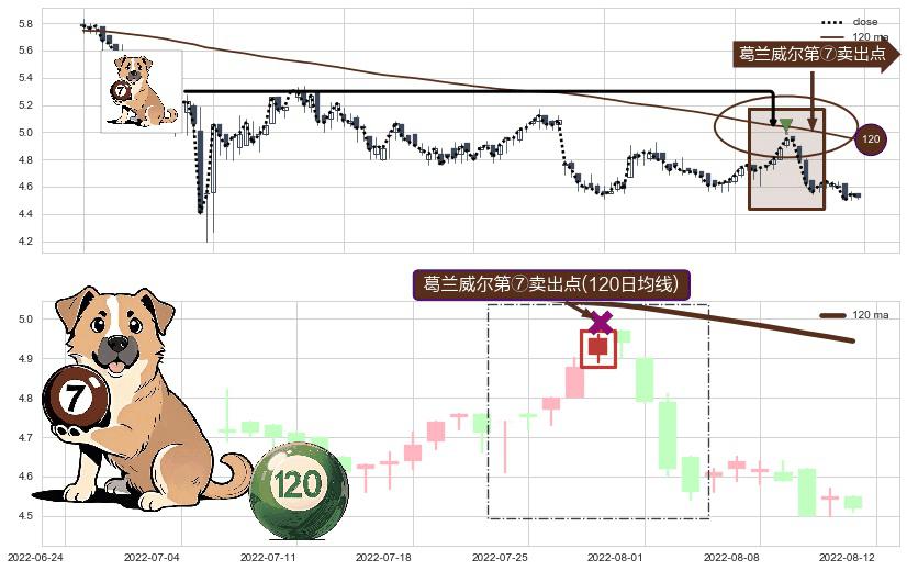⚀ 2022-07-28-日显现 葛兰威尔均线 120日均线 第⑦卖出点 下降趋势的中继信号,后市看跌,卖出信号
