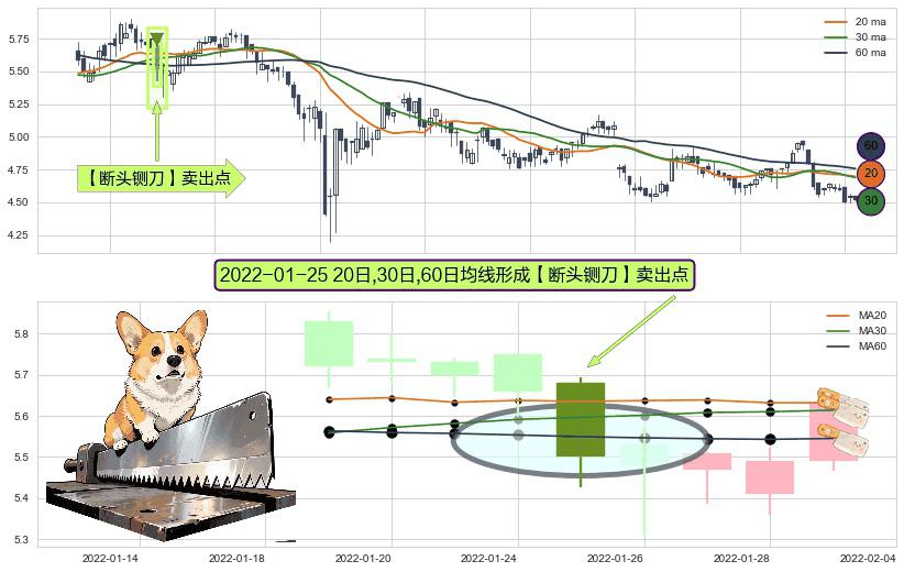 ⚀ 2022-01-25日显现 20日-30日-60日均线 【断头铡刀】卖出点 看空信号,后市看跌,卖出