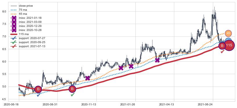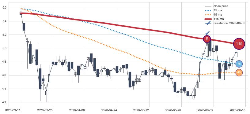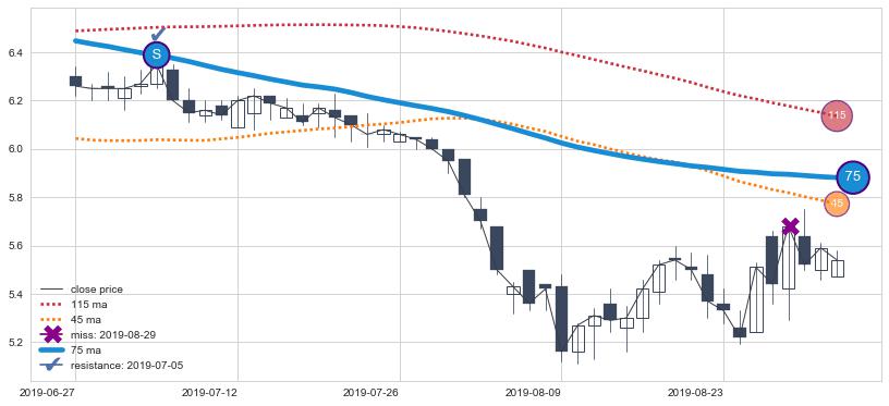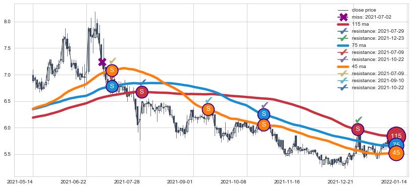 ⚁ MA30和MA60走势平行,且始终保持在短距离内,MA90始终在短中期均线上方,与短中期均线保持一定的距离,微微下行