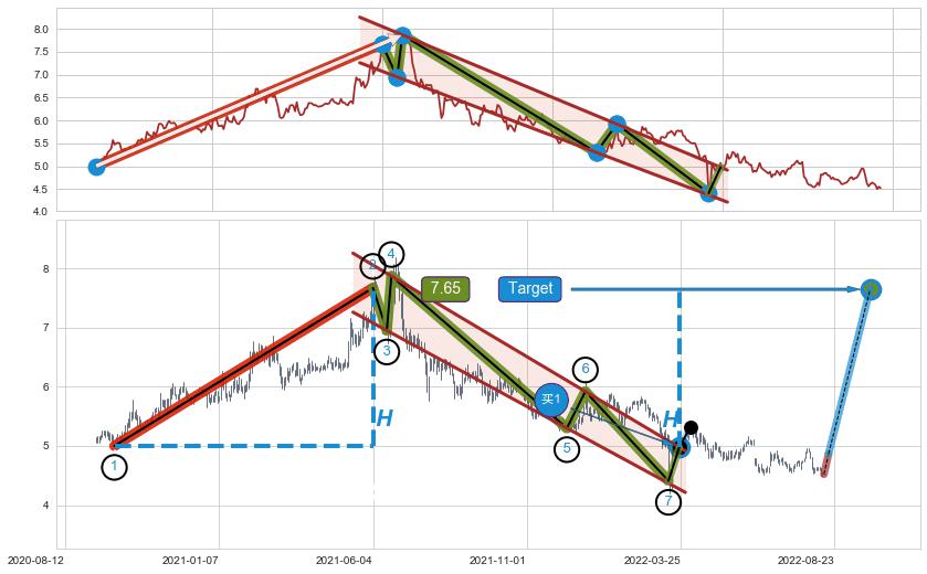 ➣ 最小中继整理涨幅→𝐇: 2.670 (𝐇旗杆的长度:旗杆起点→顶点)