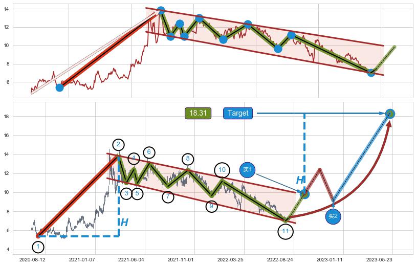 ➣ 最小中继整理涨幅→𝐇: 8.46 (𝐇旗杆的长度:旗杆起点→顶点)