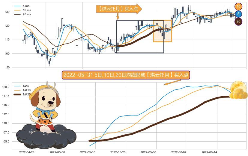⚀ 2022-05-13日-2022-06-17日显现 5日-10日-20日均线 【烘云托月】买入点 看多信号,后市看涨,买入