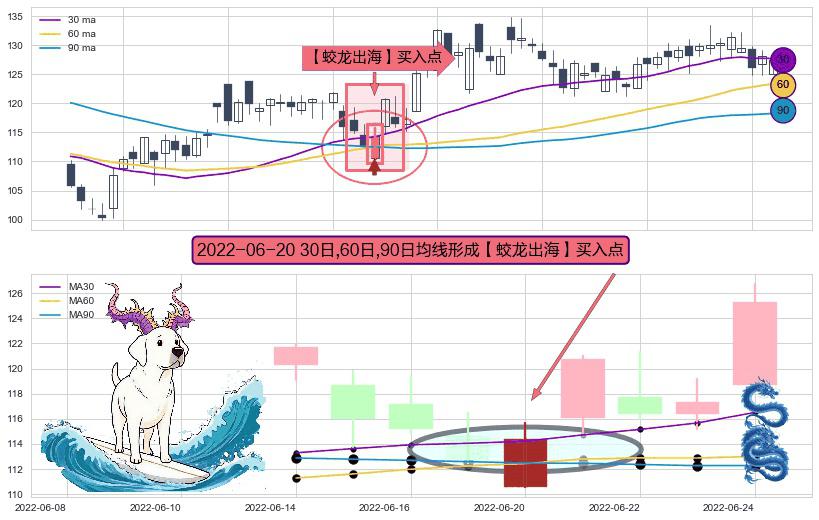 ⚀ 2022-06-20日显现 30日-60日-90日均线 【蛟龙出海】买入点 看多信号,后市看涨,买入