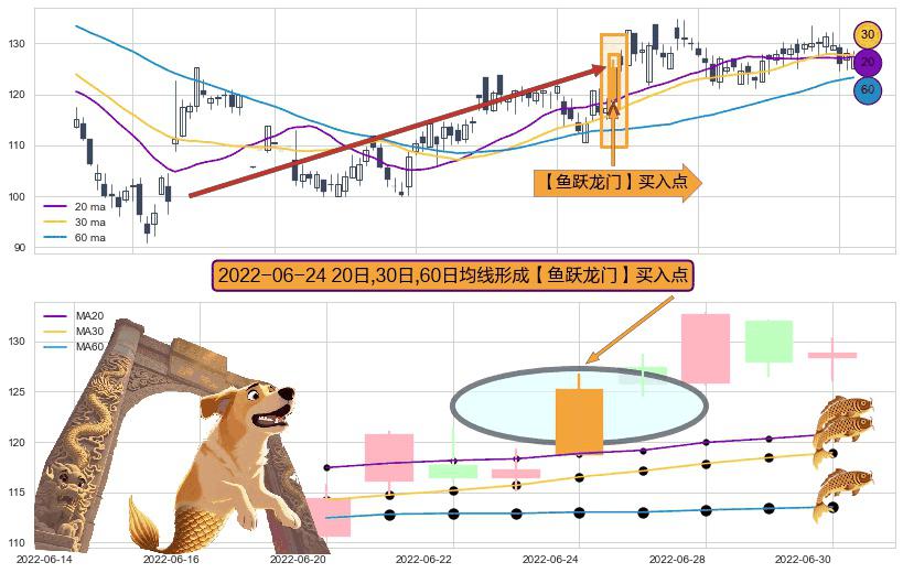 ⚀ 2022-06-24日显现 20日-30日-60日均线 【鱼跃龙门】买入点 看多信号,后市看涨,买入