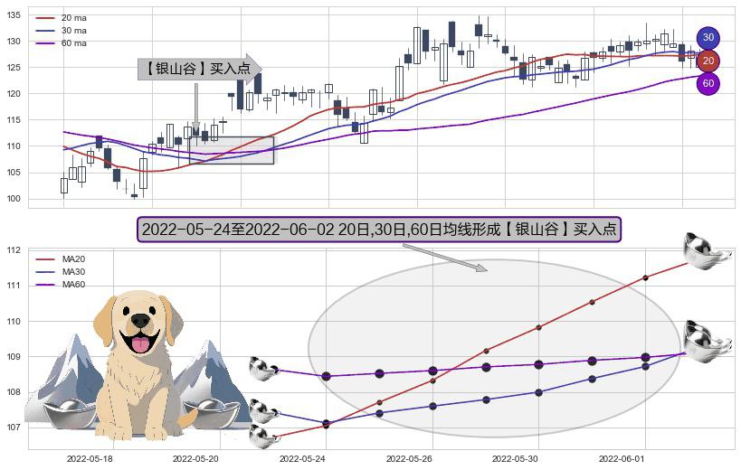 ⚀ 2022-05-25-日至2022-06-02-日显现 20日-30日-60日均线 【银山谷】买入点 看多信号,后市看涨,买入