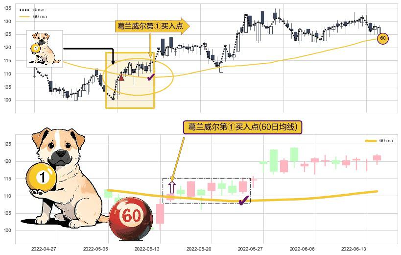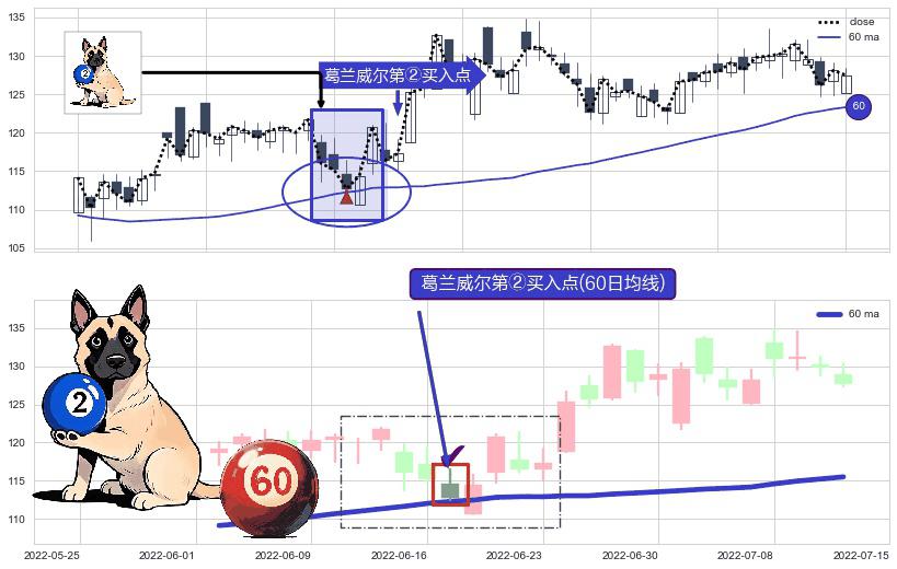 ⚀ 2022-06-17-日显现 葛兰威尔均线 60日均线 第②买入点 上升趋势的中继信号,后市看涨,买进信号