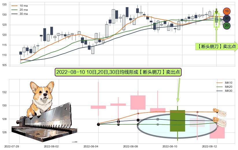 ⚀ 2022-08-10日显现 10日-20日-30日均线 【断头铡刀】卖出点 看空信号,后市看跌,卖出
