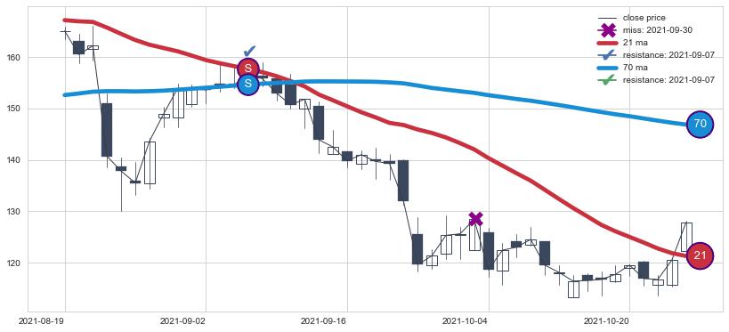 ➢ 最优均线组合共正确确认支撑阻力信号7处,正确确认率 87.50%