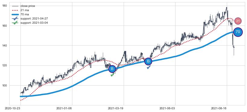 ⚅ 短期均线MA8上穿中期均线MA21形成的交叉是标准 黄金交叉