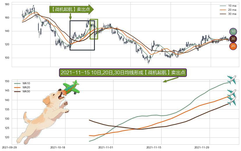 ⚀ 2021-10-25日-2021-12-03日显现 10日-20日-30日均线 【战机起航】卖出点 看空信号,后市看跌,卖出