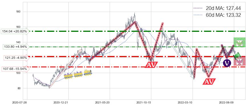 ♘ 阻力价格位154.04,可信任强度71.87%,距离最后交易2022-08-12形成的收盘价格127.50相差 +20.82%