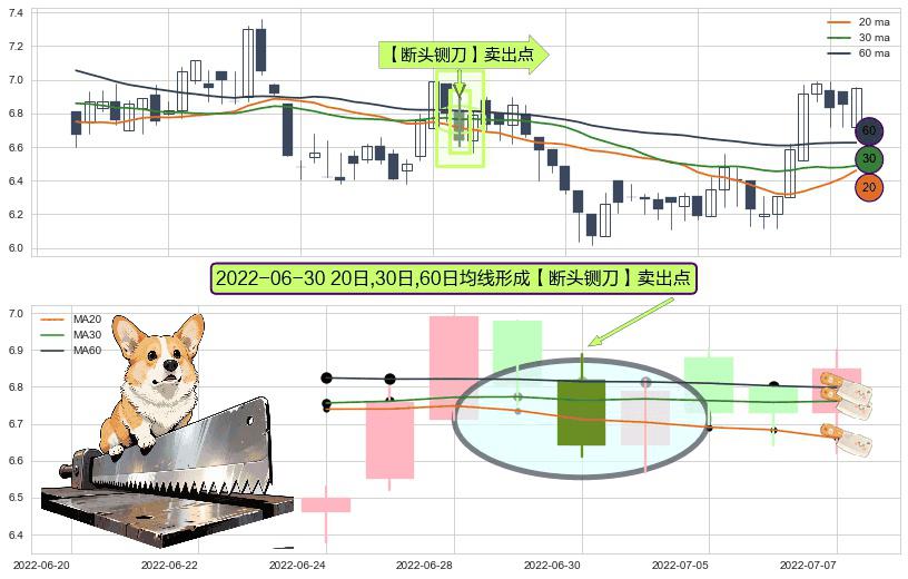 ⚀ 2022-06-30日显现 20日-30日-60日均线 【断头铡刀】卖出点 看空信号,后市看跌,卖出