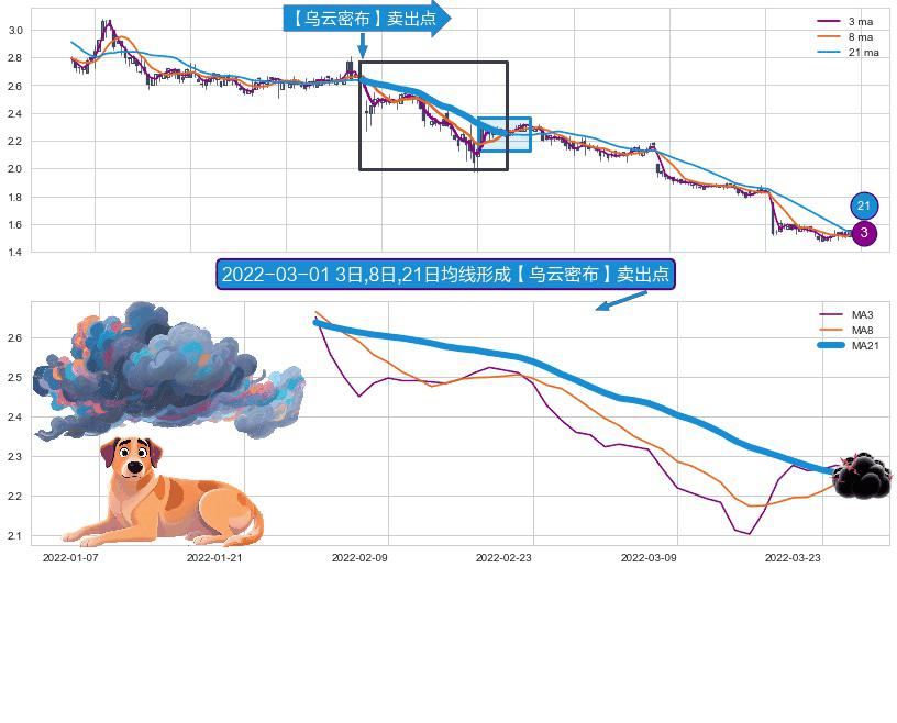 形态多维评估: ⚀ 2022-01-28日-2022-03-25日显现 3日-8日-21日均线 【乌云密布】卖出点 看空信号,后市看跌,卖出