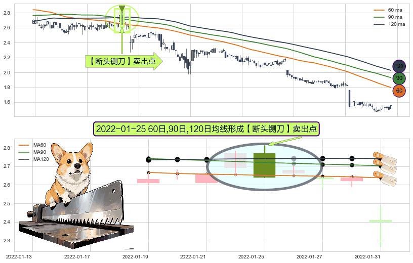 形态多维评估: ⚀ 2022-01-25日显现 60日-90日-120日均线 【断头铡刀】卖出点 看空信号,后市看跌,卖出