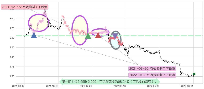 ♘ 阻力价格位2.555,可信任强度98.24%,距离最后交易2022-08-12形成的收盘价格1.5600相差 +63.80%