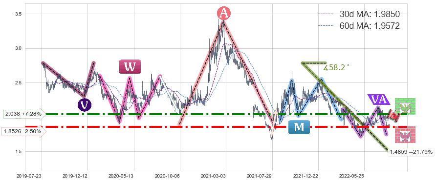 ➢ 【仅预测突破】最后价格:1.9000与预测突破价格:2.127→【空间较大】后续最小【反转】第一目标价格→(2022-10-17: 2.473 )