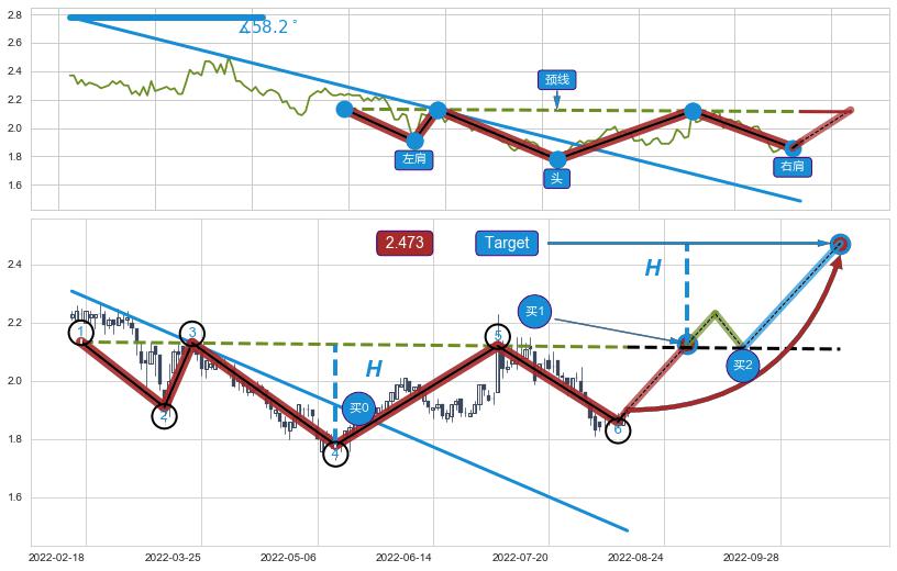 ➣ 最小反转涨幅→𝐇: 0.34537 (头部与颈线垂直距离)