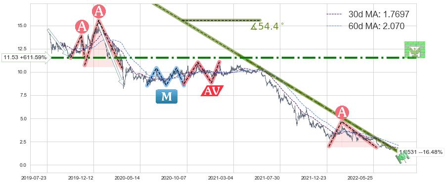 ♘ 阻力价格位11.53,可信任强度74.74%,距离最后交易2022-08-12形成的收盘价格1.6200相差 +611.59%