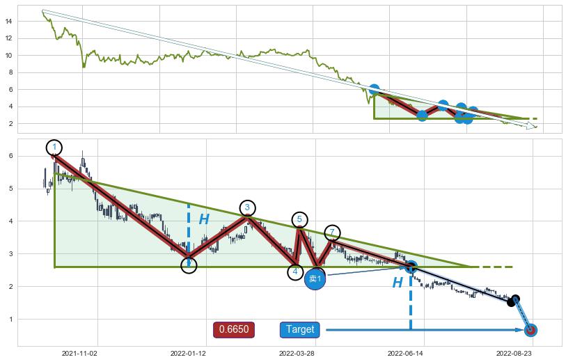 ➢ 【已确认突破】最后价格:1.6200与最小【整理】第一目标价格→(2022-08-23: 0.6650 )相较: 下跌空间【中等】