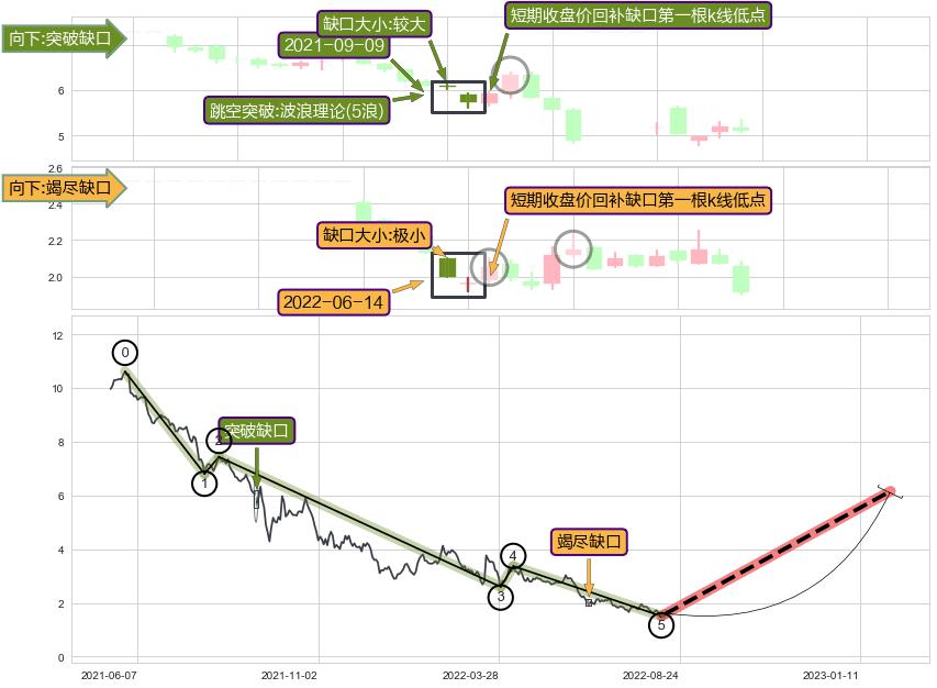 ➢ 2022-06-14形成:向下跳空【竭尽】缺口