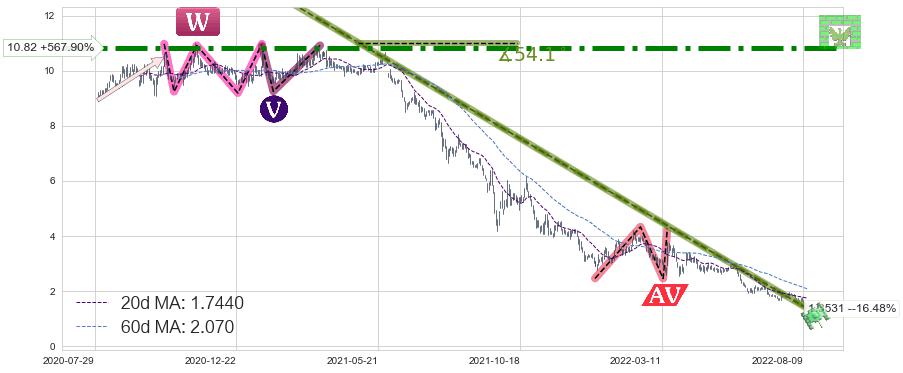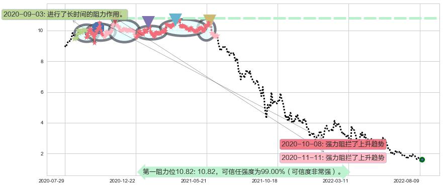 ♘ 阻力价格位10.82,可信任强度99.00%,距离最后交易2022-08-12形成的收盘价格1.6200相差 +567.90%