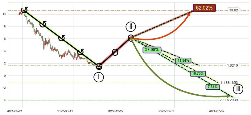 ➣ 循环浪继续向下【平均值】位置(2024-06-05, -1.1881653),匹配聚类样本比例49.30%, 可能性概率18.73%