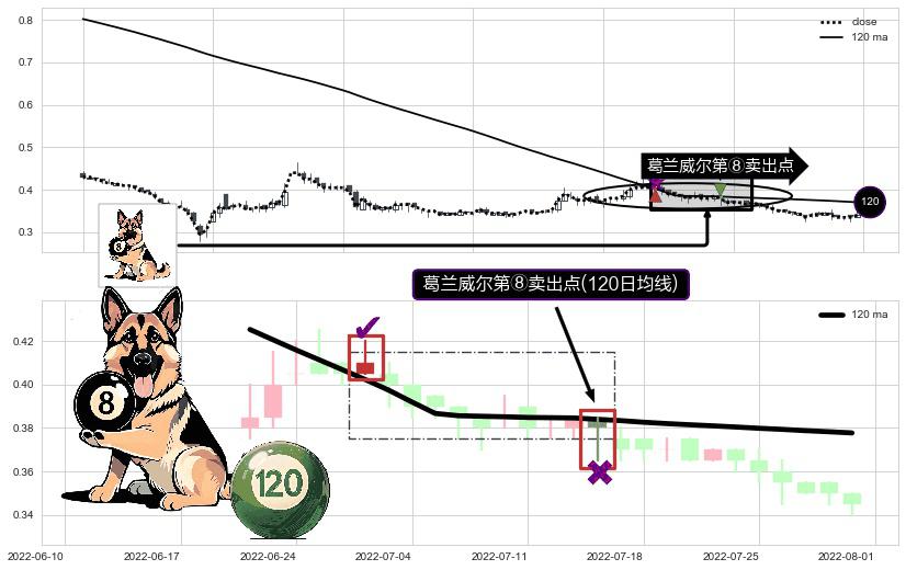 ⚀ 2022-07-14-日显现 葛兰威尔均线 120日均线 第⑧卖出点 下降趋势的中继信号,后市看跌,卖出信号