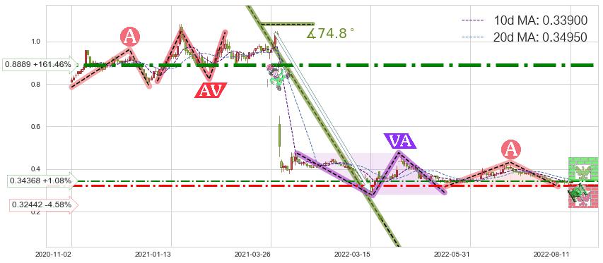 ♘ 阻力价格位0.8889,可信任强度96.29%,距离最后交易2022-08-12形成的收盘价格0.34000相差 +161.46%