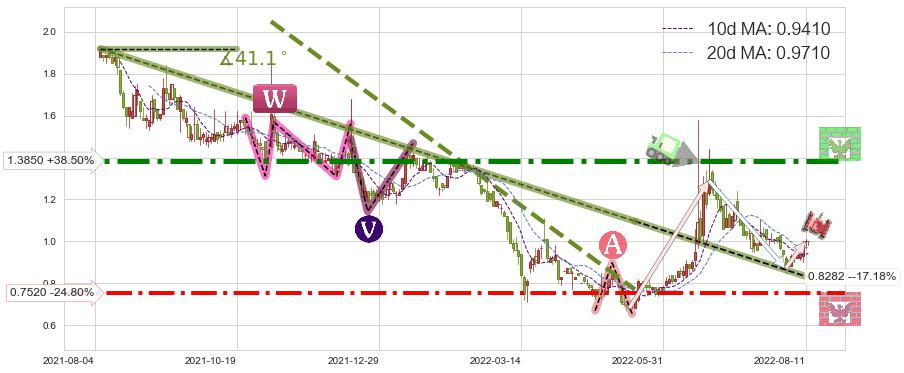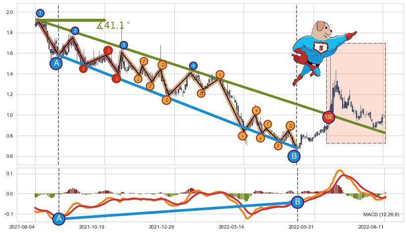 ⚔️ 2021-08-06-2022-05-17下跌趋势存在反转上涨[机会],其原下跌趋势的阻力位(0.8282)已被突破[强支撑信号],原下跌趋势角度: 41.1˚