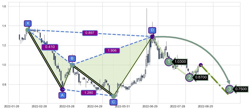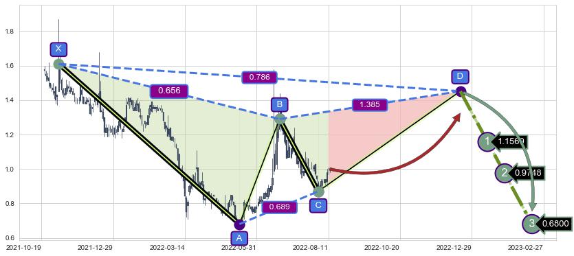 ➣ 未完成【伽利】形态起点X: 2021-11-04, 已到达C点: 2022-08-02, 预测最终D点: 2022-12-19, 共280交易日