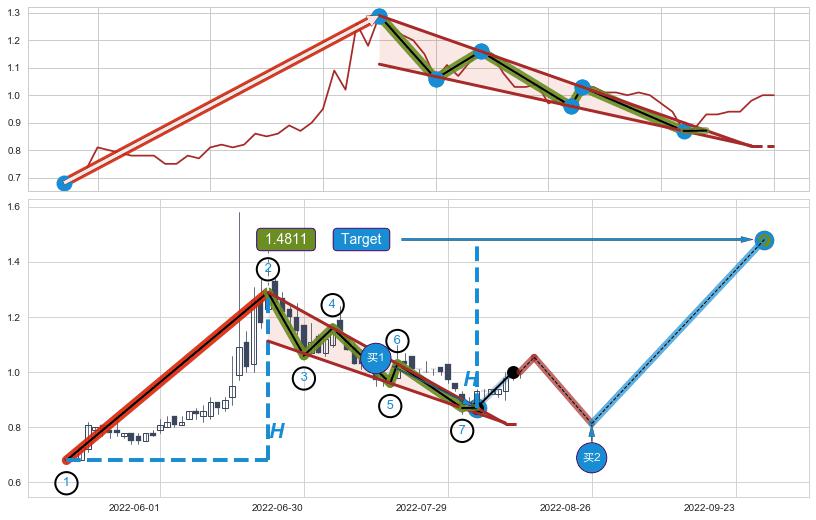 ➢ AI预测: 假定反转继续,第❸价格目标位置(2022-09-12, 0.7500)