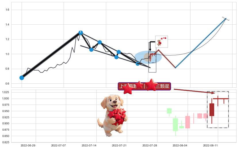 从2022-08-02至2022-08-12,共包含9个交易日,阶段股价上涨14.20%,阶段股价变动位移路程比: 1 : 1.0