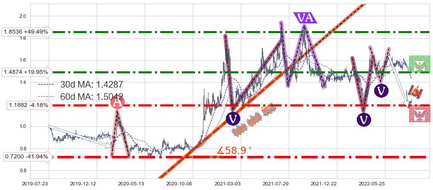 ♘ 阻力价格位1.8536,可信任强度77.63%,距离最后交易2022-08-12形成的收盘价格1.2400相差 +49.49%